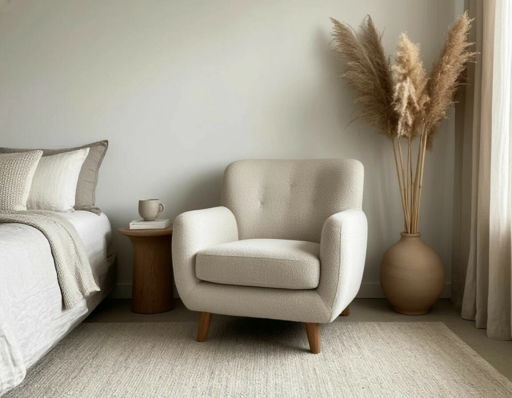 В 2026 году актуальны плавные линии и округлые формы мебели. Кровати, кресла, тумбы и комоды с мягкими изгибами создают ощущение уюта и гармонии. Дизайнеры продолжают использовать светлые скандинавские оттенки, которые визуально облегчают пространство и хорошо сочетаются с пастельными обоями, подчеркивая минимализм интерьера.