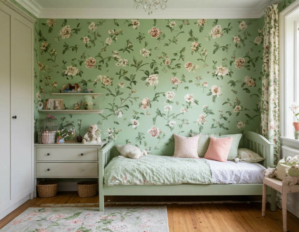 • Комбинируйте однотонные обои и мягкие узоры для создания глубины.